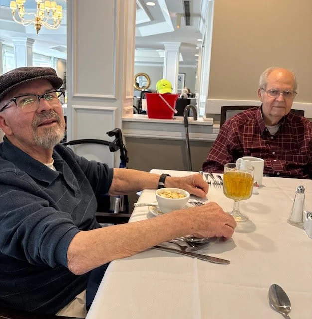 Today, Dad lives in an assisted living facility not far from us. He and Mom are both enjoying—and sometimes just tolerating—the later decades of life. Dad, always shaped by rhythm and routine, heads to breakfast, lunch, and dinner at the set times every day. He’s joined by others who live by those same daily patterns. One of them is Father Denis.